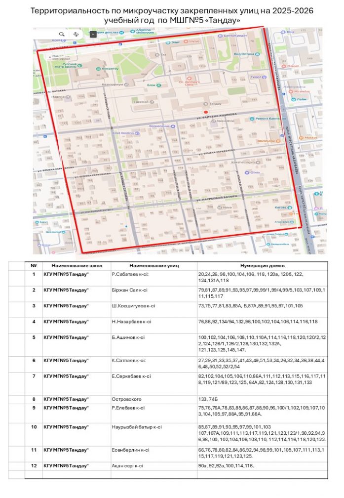 №5 КП «Тандау» гимназия бойынша шағын ауданды тағайындау туралы