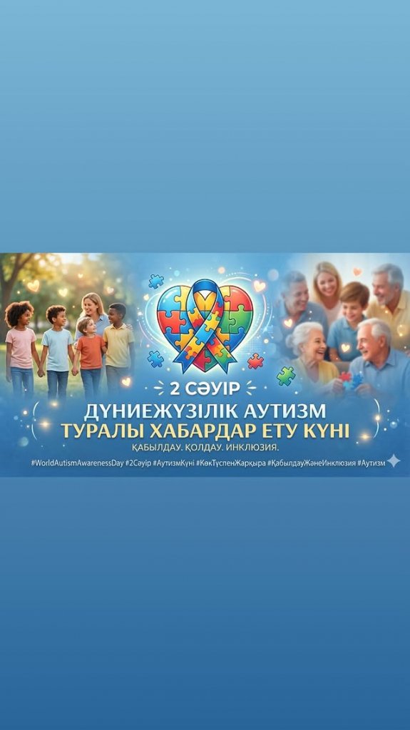 ​Жыл сайын 2 сәуір күні бүкіл әлемде Аутизм туралы ақпарат таратудың бүкіләлемдік күні атап өтіледі. Бұл күн қоғамның назарын аутизм спектрінің бұзылыстары (АСБ) бар адамдарды түсіну, қабылдау және қолдау мәселелеріне аударуға бағытталған.