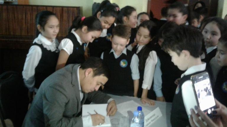 Встреча прошла в рамках реализации  проекта «Рухани жаңғыру». С презентацией книги президента Н.Назарбаева   «Эра Независимости» выступил Шаяхметов Нурбек Уахапович. Этот труд ученые назвали настольной энциклопедией молодого поколения жителей нашей страны. Уникальный труд Президента поможет молодым читателям понять особенности развития независимого государства. В книге доступным и понятным языком написано, как происходило становление суверенной республики, какие сложности были на этом пути, и как они преодолевались. Также своим творчеством поделился поэт Дуйсенгазин Серикзат Максутович. Жанайдаров Талгат Жанайдарович рассказал  о Евразийском  национальном  университете  им. Л.Н.Гумилева и в дар библиотеке преподнес книги «Шакарим» Ерлана Садыкова и «Энциклопедию Льва Гумилева»